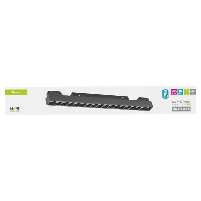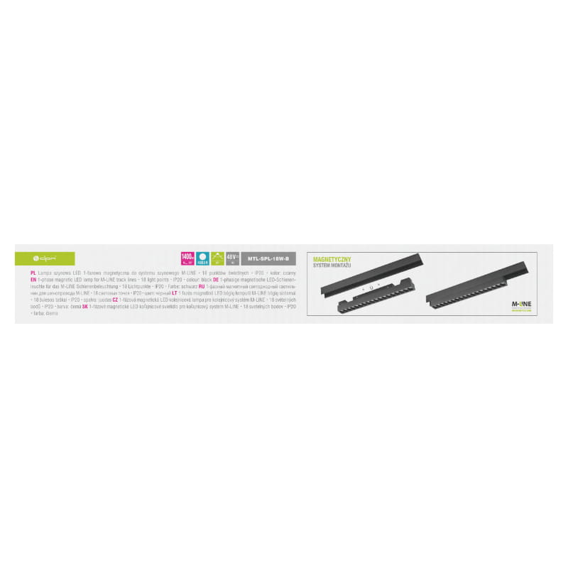 Reflektor liniowy MTL-SPL-18W-B wyposażony w aż 18 punktów świetlnych, oferuje moc 18 W i strumień świetlny 1400 lm, zapewniając jasne i równomierne oświetlenie.