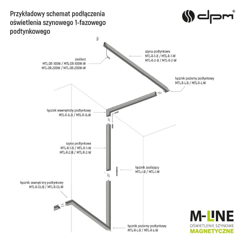System oświetlenia szynowego serii M-LINE, marki DPM to system 1-fazowy magnetyczny, pozwalający na włączanie/wyłączanie wszystkich źródeł światła systemu jednocześnie.