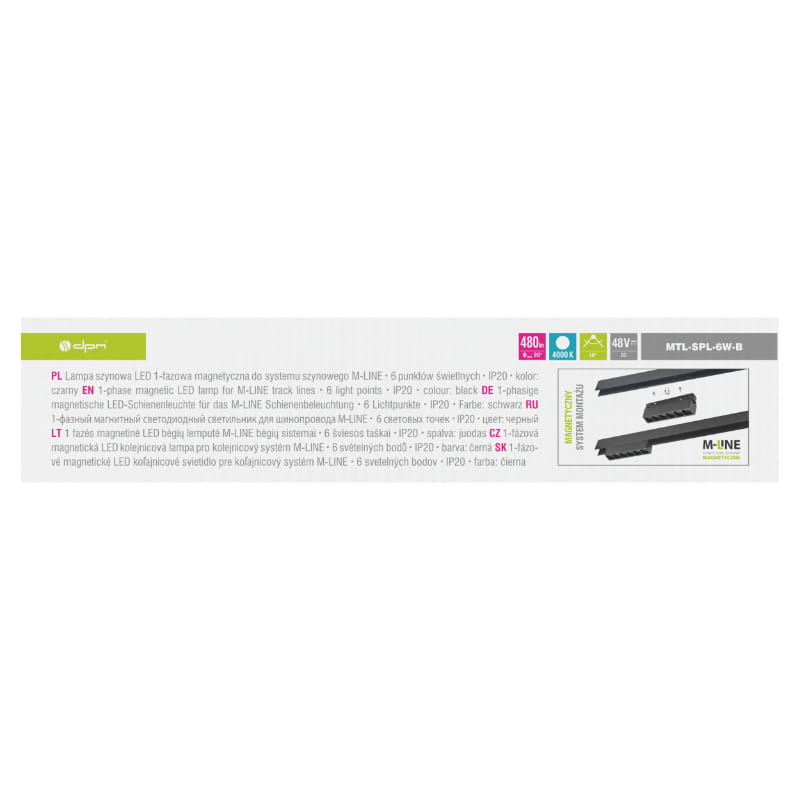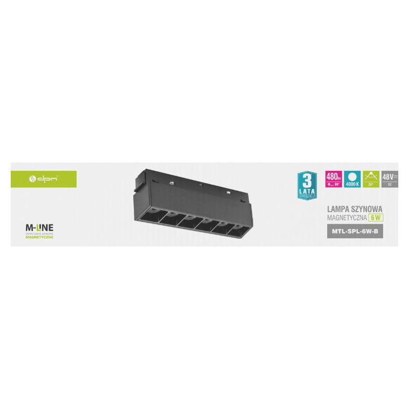 Reflektor liniowy MTL-SPL-6W-B wyposażony w aż 6 punktów świetlnych, oferuje moc 6 W i strumień świetlny 480 lm, zapewniając jasne i równomierne oświetlenie.