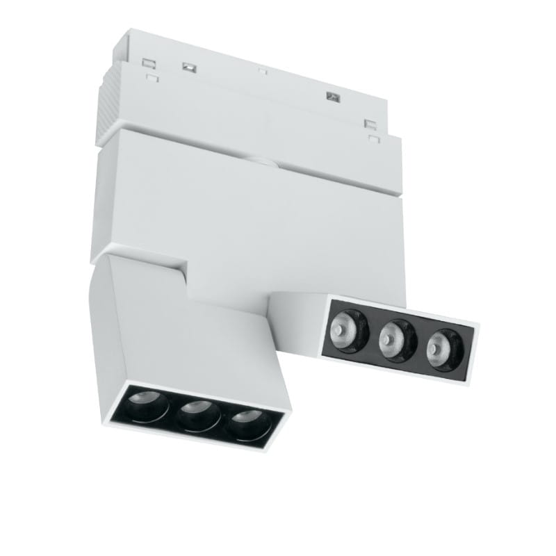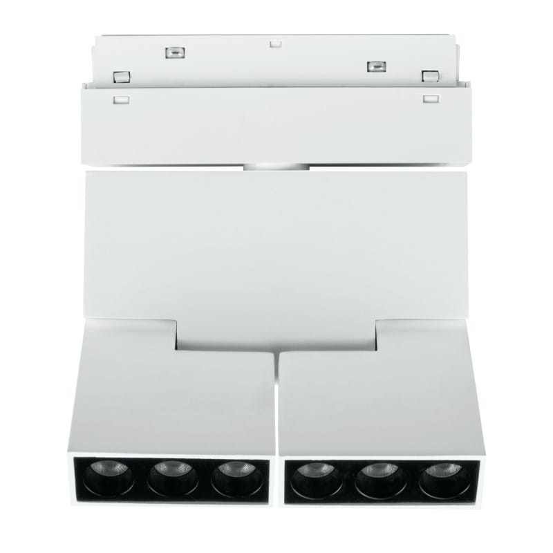 Reflektor podwójny liniowy MTL-SPRL2-6W-W wyposażony w łącznie 6 punktów świetlnych, oferuje moc 6 W i strumień świetlny 480 lm, zapewniając jasne i równomierne oświetlenie. Reflektor jest podzielony na dwa regulowane segmenty, które można regulować w zakresie 180°.
