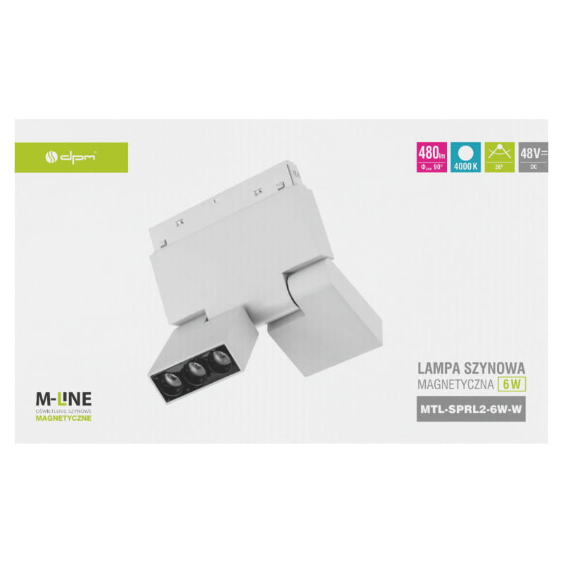Reflektor szynowy magnetyczny podwójny liniowy, regulowany, 6 W, 480 lm, 4000 K, biały, M-LINE