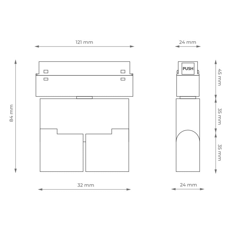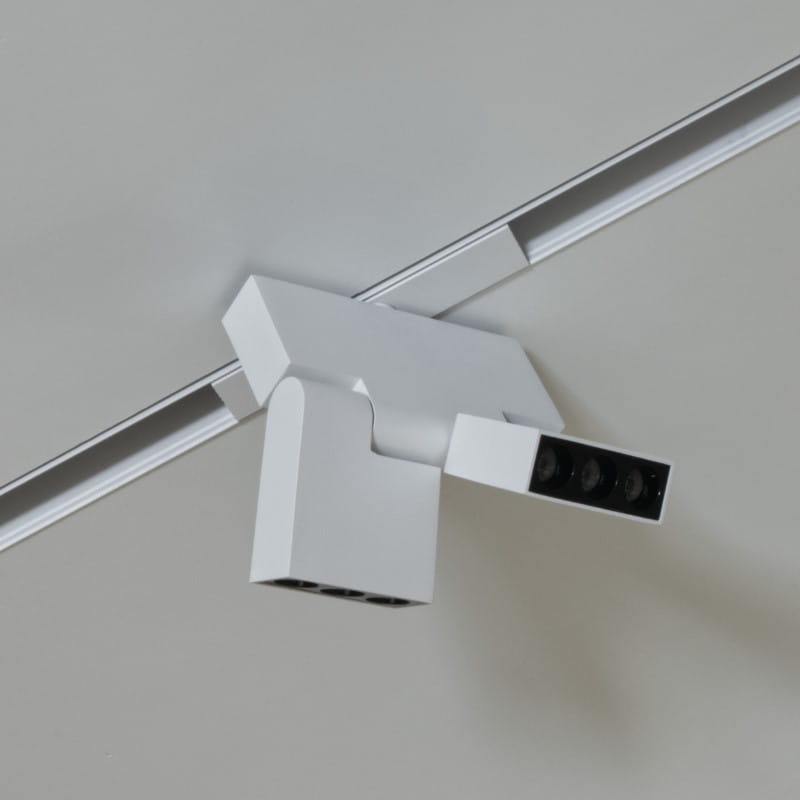 Instalacja wszystkich dostępnych źródeł światła w szynoprzewodach przebiega w ten sam sposób. Wystarczy wpiąć na magnes reflektory / lampy w wybranym miejscu na szynie oświetleniowej. Źródła światła przyczepią się oraz doprowadzą prąd z szynoprzewodu.