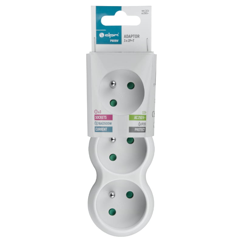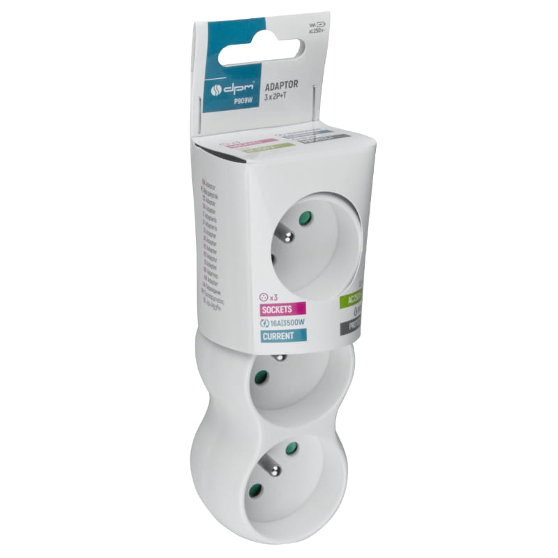 Rozgałęźnik elektryczny P909W to praktyczne urządzenie, które pozwala na jednoczesne podłączenie trzech urządzeń do jednego źródła zasilania. Wyposażony w gniazda z uziemieniem (2P+T), zapewnia bezpieczeństwo i stabilność w użytkowaniu, chroniąc zarówno podłączone sprzęty, jak i użytkownika.