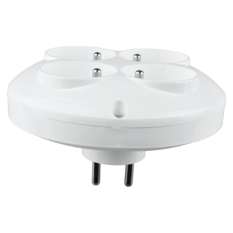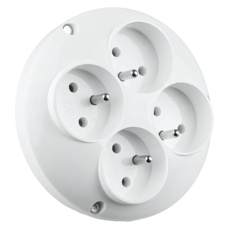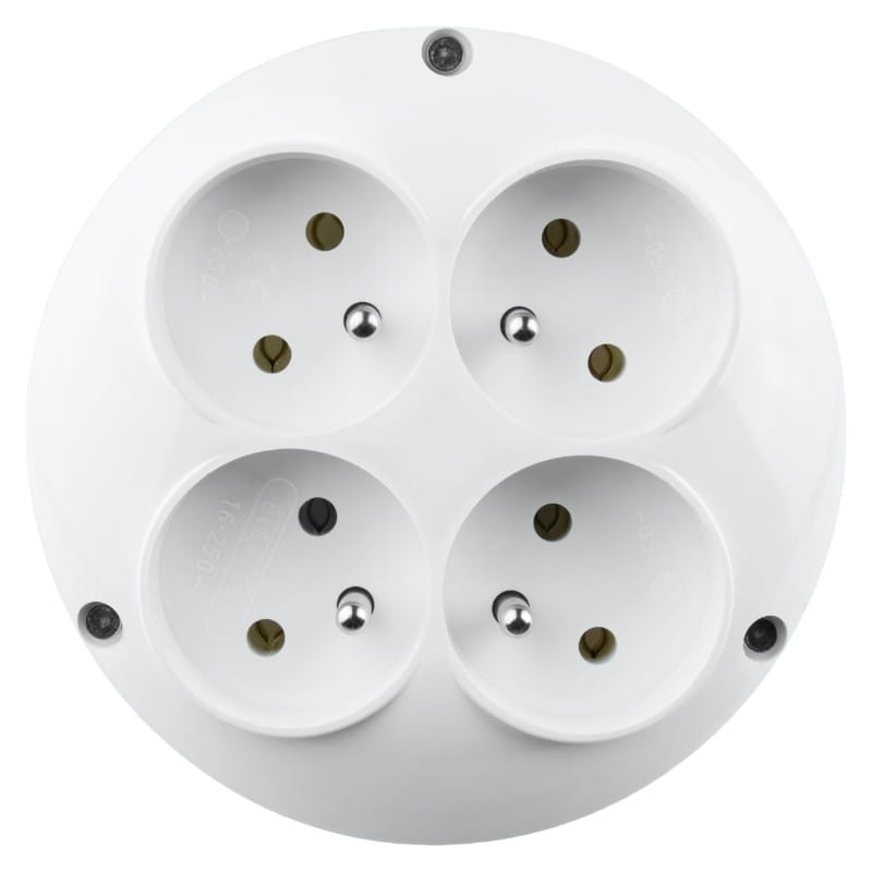 Funkcjonalny rozgałęźnik z czterema gniazdami okrągłymi pozwoli Ci na podłączenie 4 urządzeń przy jednoczesnym nnie obciążając przy tym gniazda.