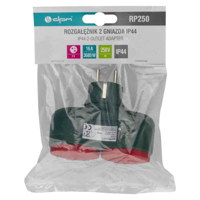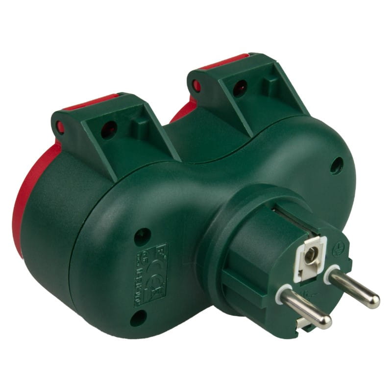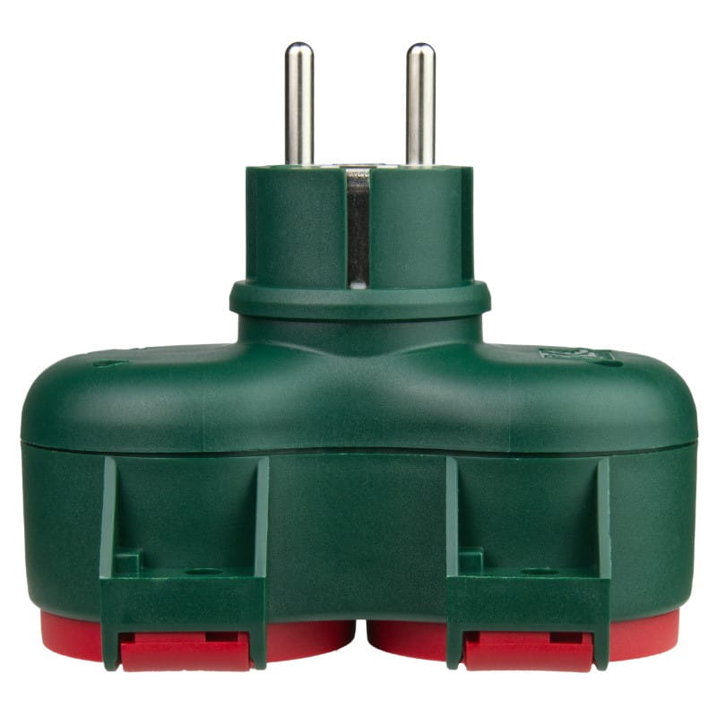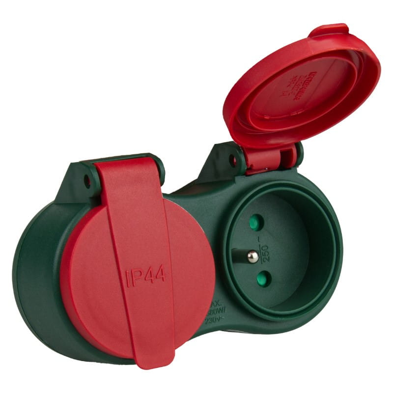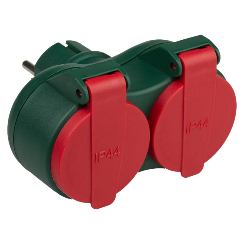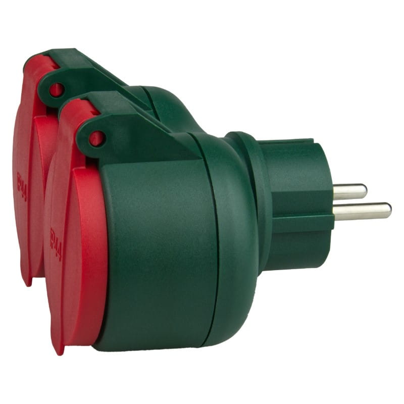 Rozgałęźnik z klapkami ochronnymi na gniazda, pozwalający ochronę nieużywanych gniazd w miejscach o podwyższonej wilgotności.