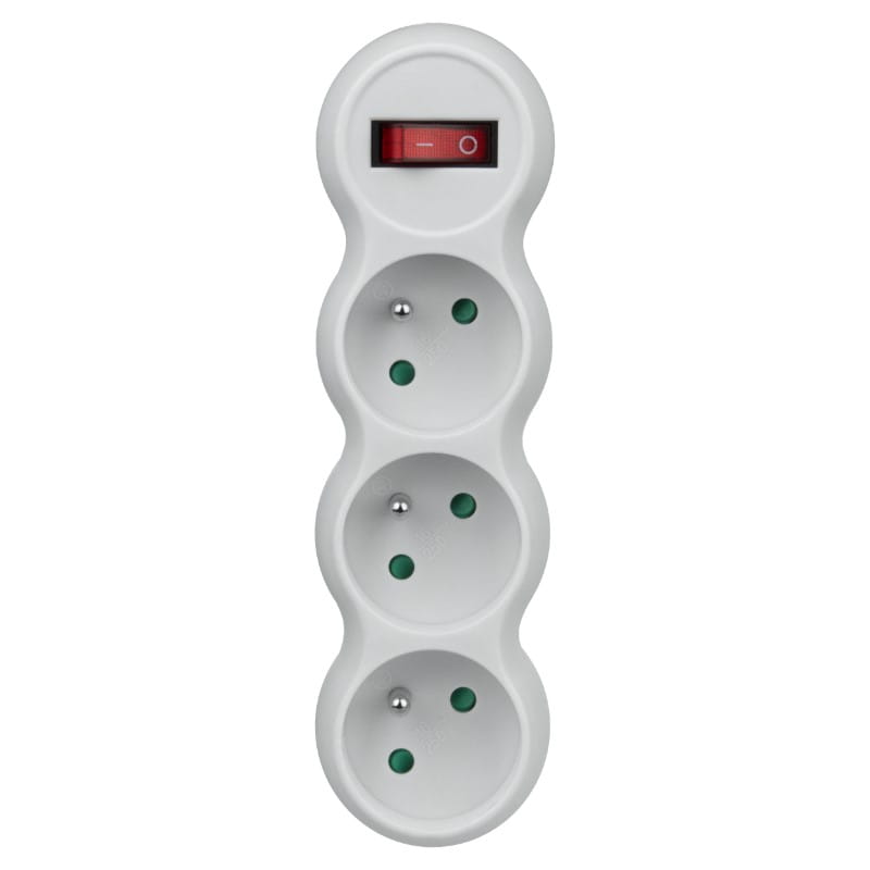 Funkcjonalny rozgałęźnik z trzema gniazdami i wyłącznikiem