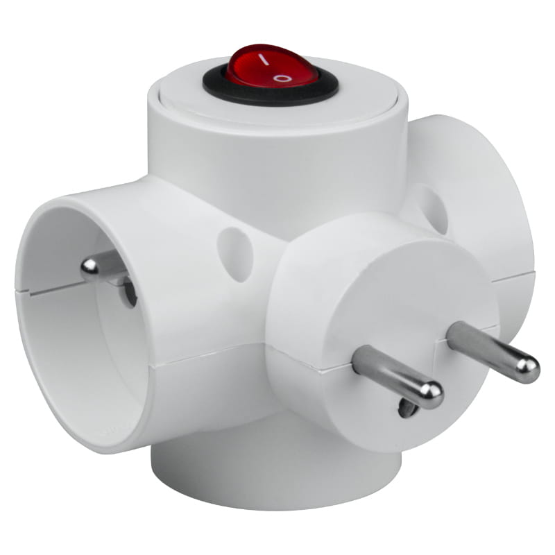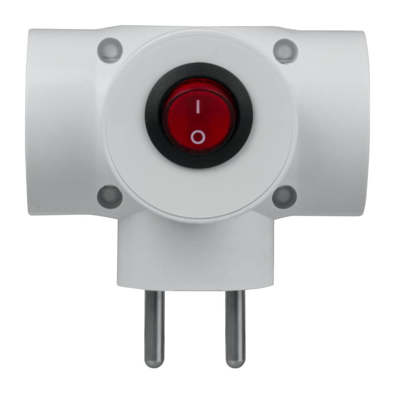 Rozgałęźnik elektryczny z włącznikiem, 3 gniazda z uziemieniem, biały