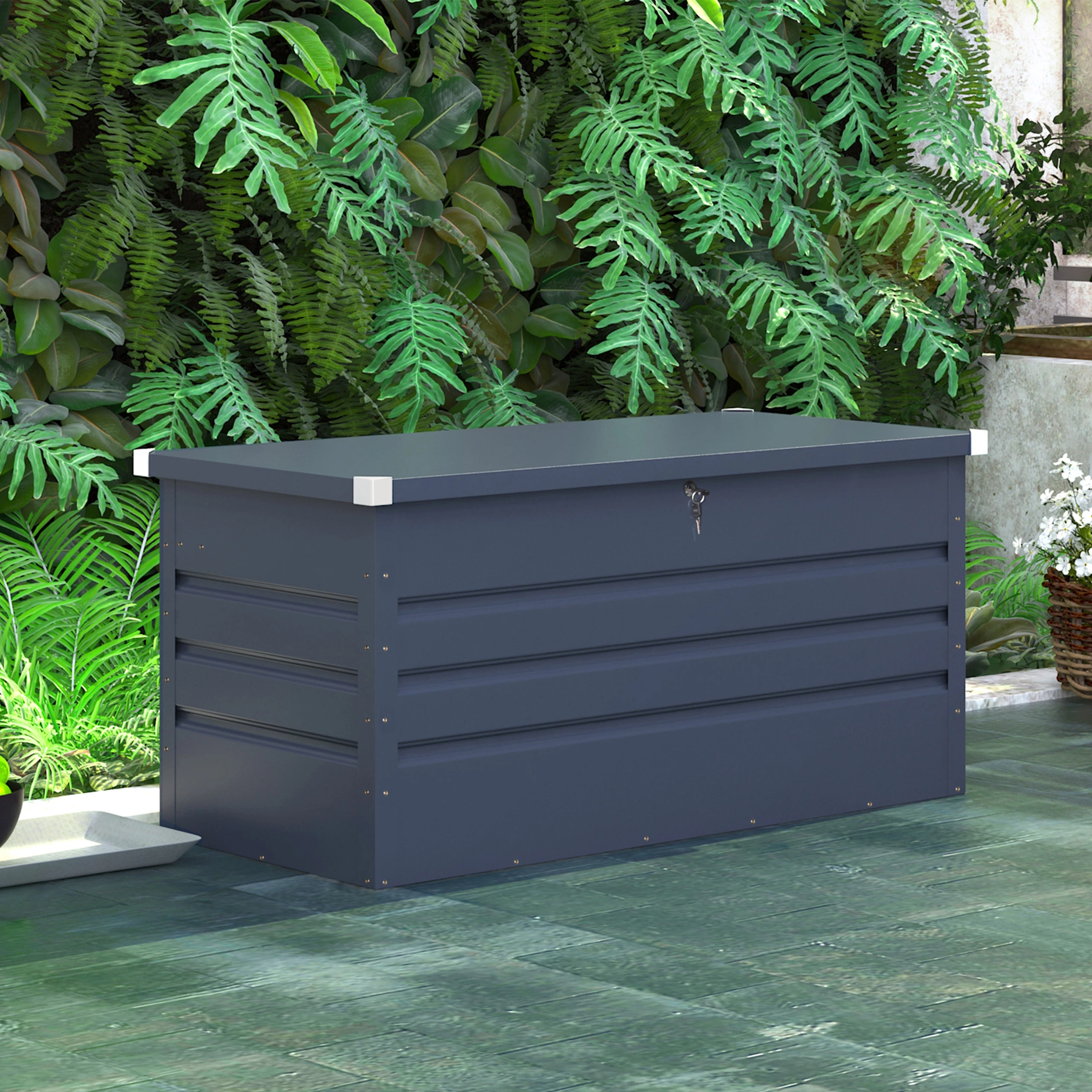 Skrzynia ogrodowa Goteborg Maxi Grey to wytrzymały i stylowy schowek wykonany z ocynkowanej blachy stalowej, idealny do przechowywania narzędzi i akcesoriów ogrodowych. Dzięki odporności na korozję i solidnej konstrukcji, skrzynia sprawdzi się zarówno w ogrodzie, jak i w warsztacie czy magazynie. Wyposażona w siłowniki ułatwiające otwieranie, zamek na klucz i śruby montażowe, zapewnia bezpieczeństwo i wygodę użytkowania. Jej szary kolor i nowoczesny design pasują do różnych przestrzeni, a duże wymiary wewnętrzne (160 cm x 60 cm x 58 cm) oferują sporo miejsca do przechowywania.