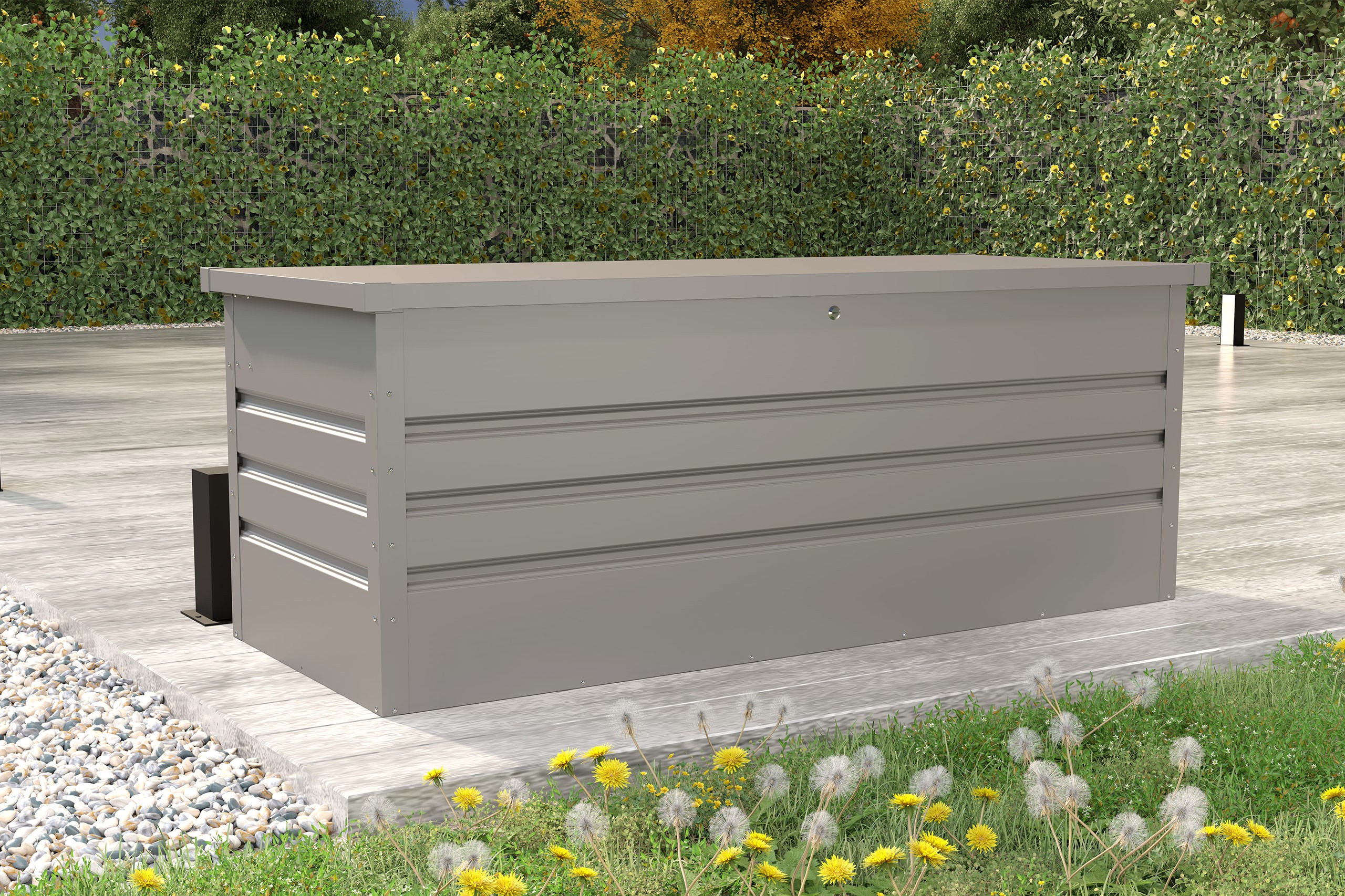 Skrzynia ogrodowa metalowa Goteborg Maxi Silver Grey 165 x 69 x 62 cm