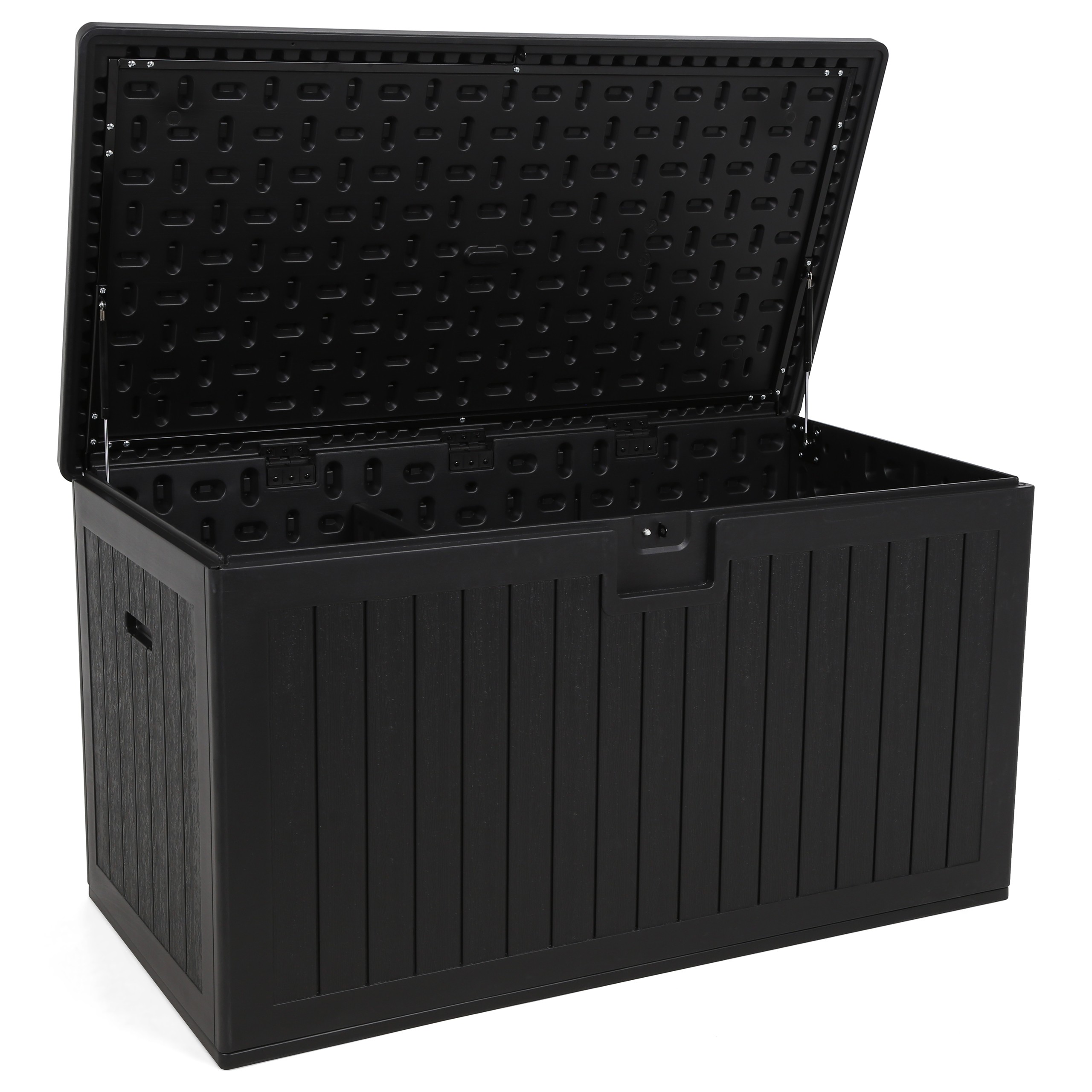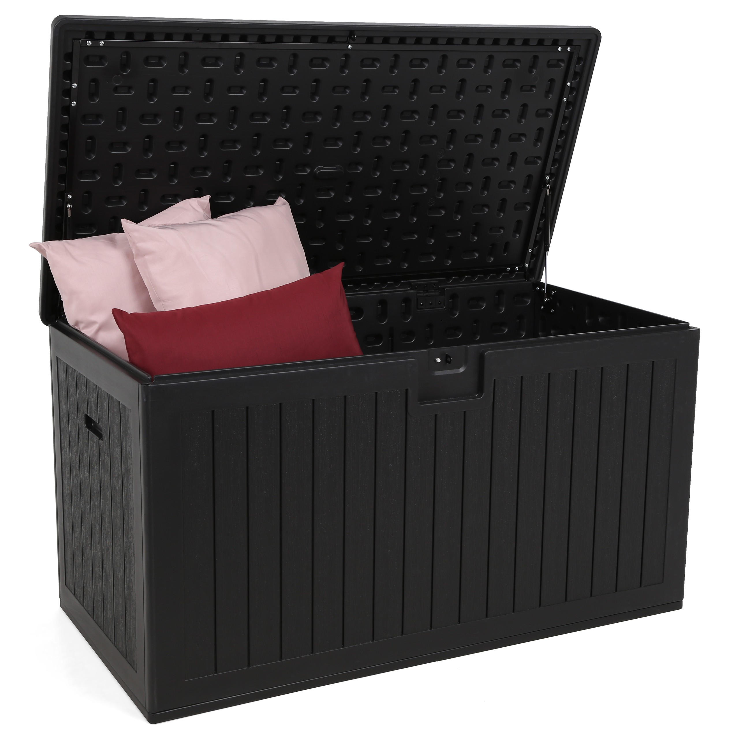 Skrzynia ogrodowa Gotland Black to wielofunkcyjne rozwiązanie, łączące przechowywanie, siedzisko i dekorację. Pojemna, trwała i odporna na warunki pogodowe, idealna do ogrodu, tarasu czy na balkon. Elegancki czarny kolor pasuje do każdej przestrzeni.