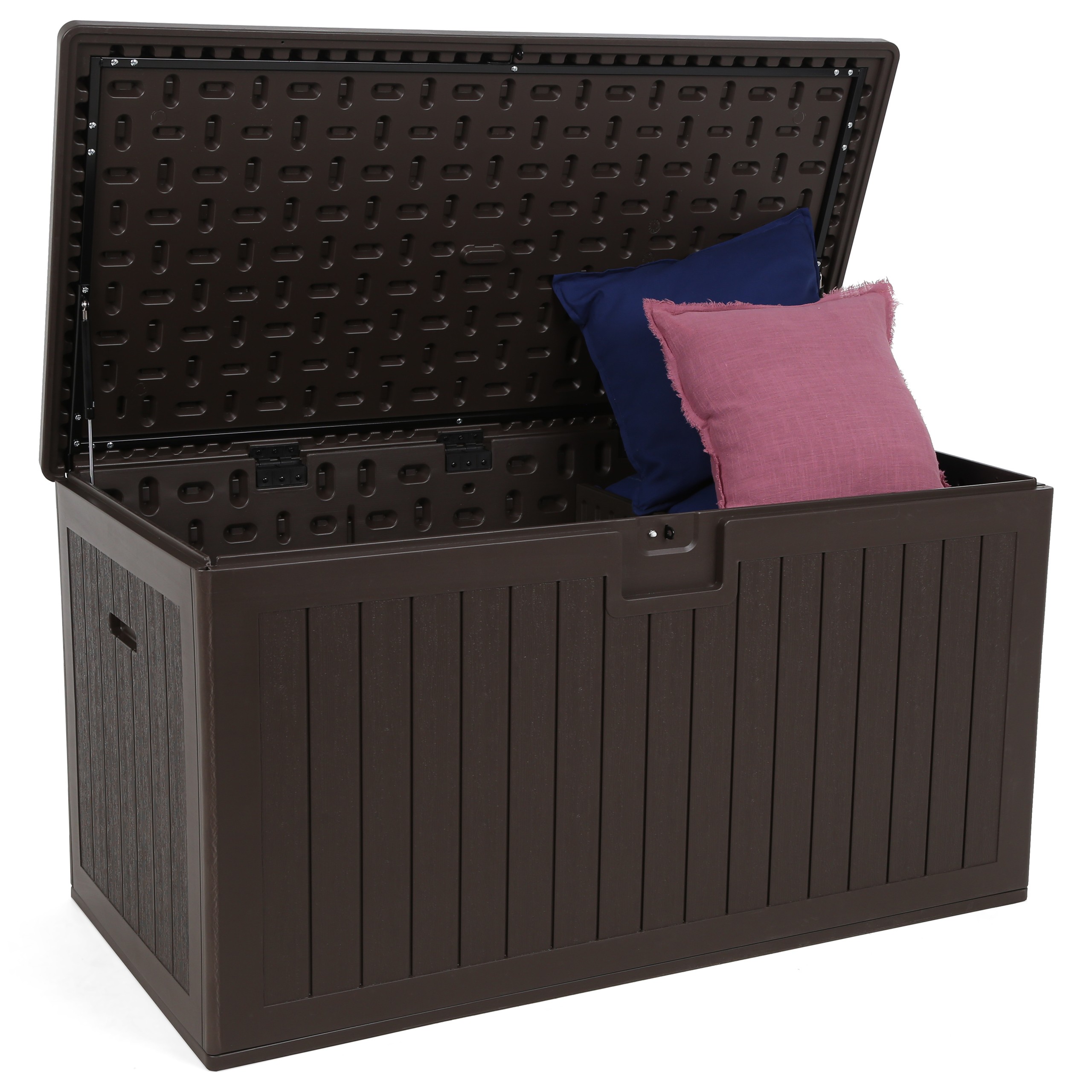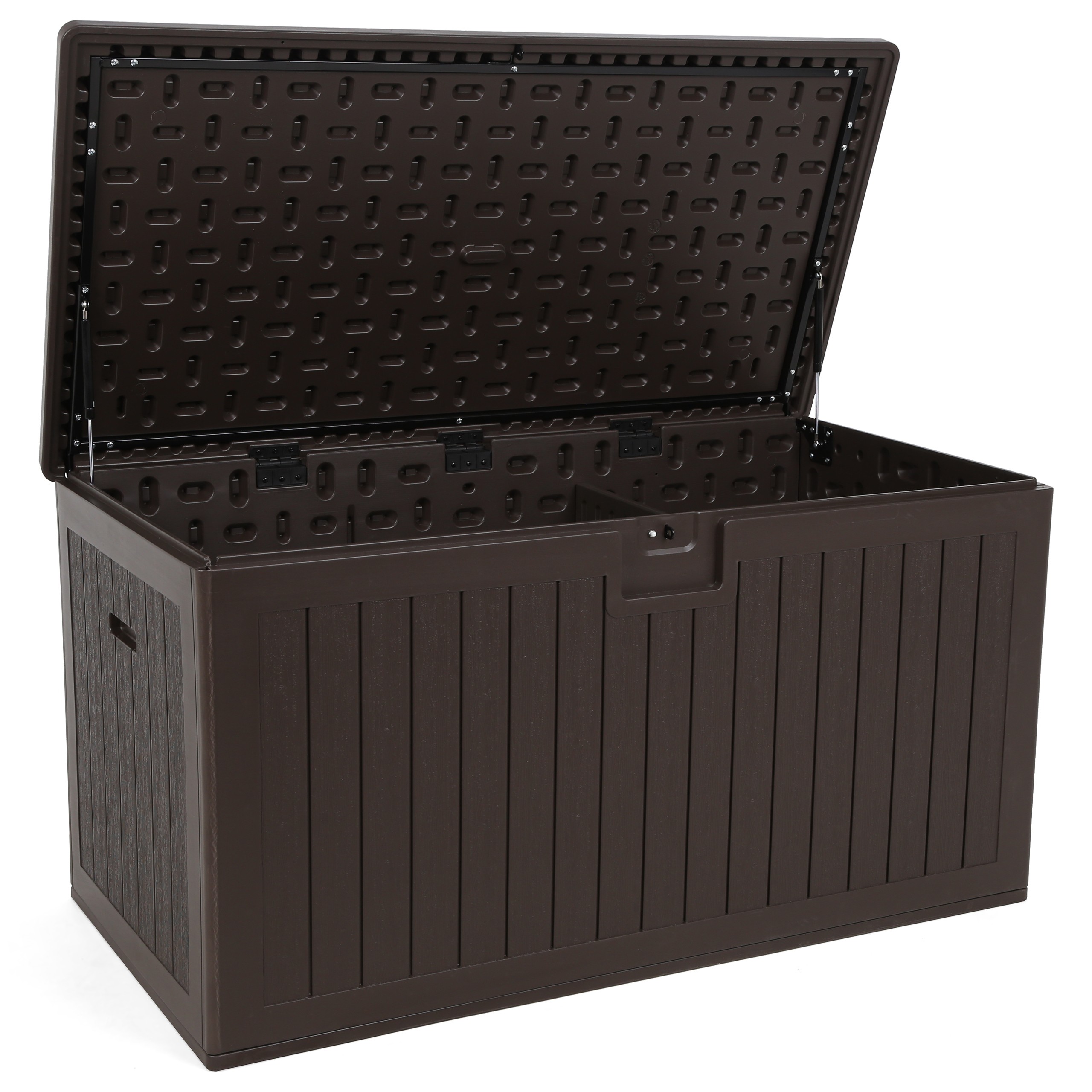 Skrzynia ogrodowa Gotland Brown to wielofunkcyjne rozwiązanie, łączące przechowywanie, siedzisko i dekorację. Pojemna, trwała i odporna na warunki pogodowe, idealna do ogrodu, tarasu czy na balkon. Elegancki brązowy kolor pasuje do każdej przestrzeni.