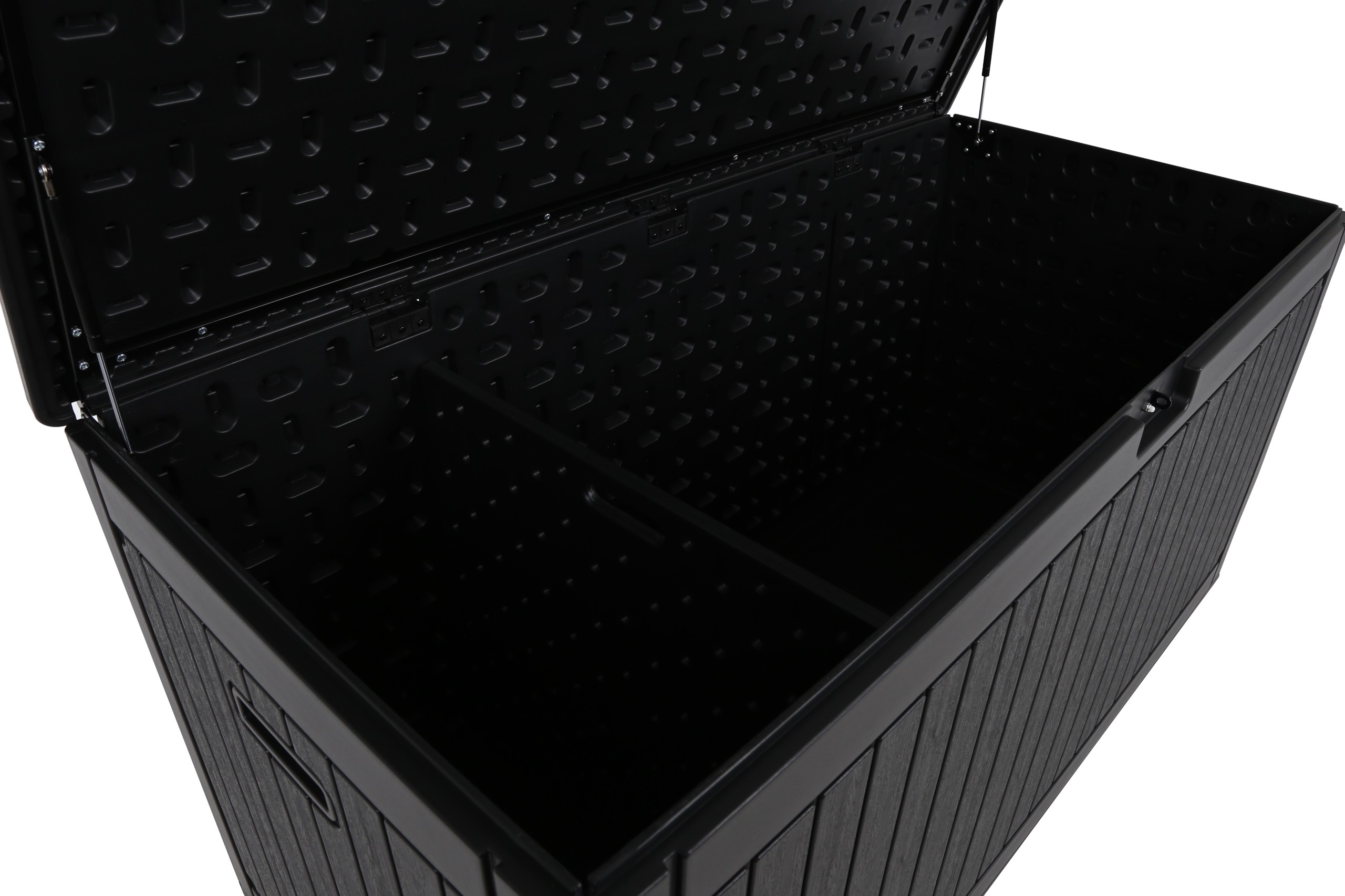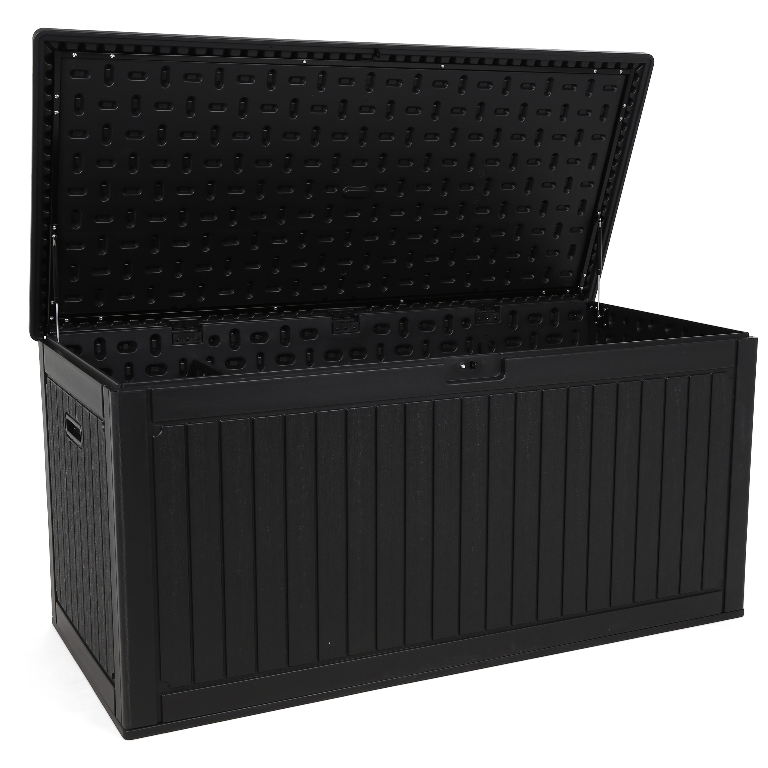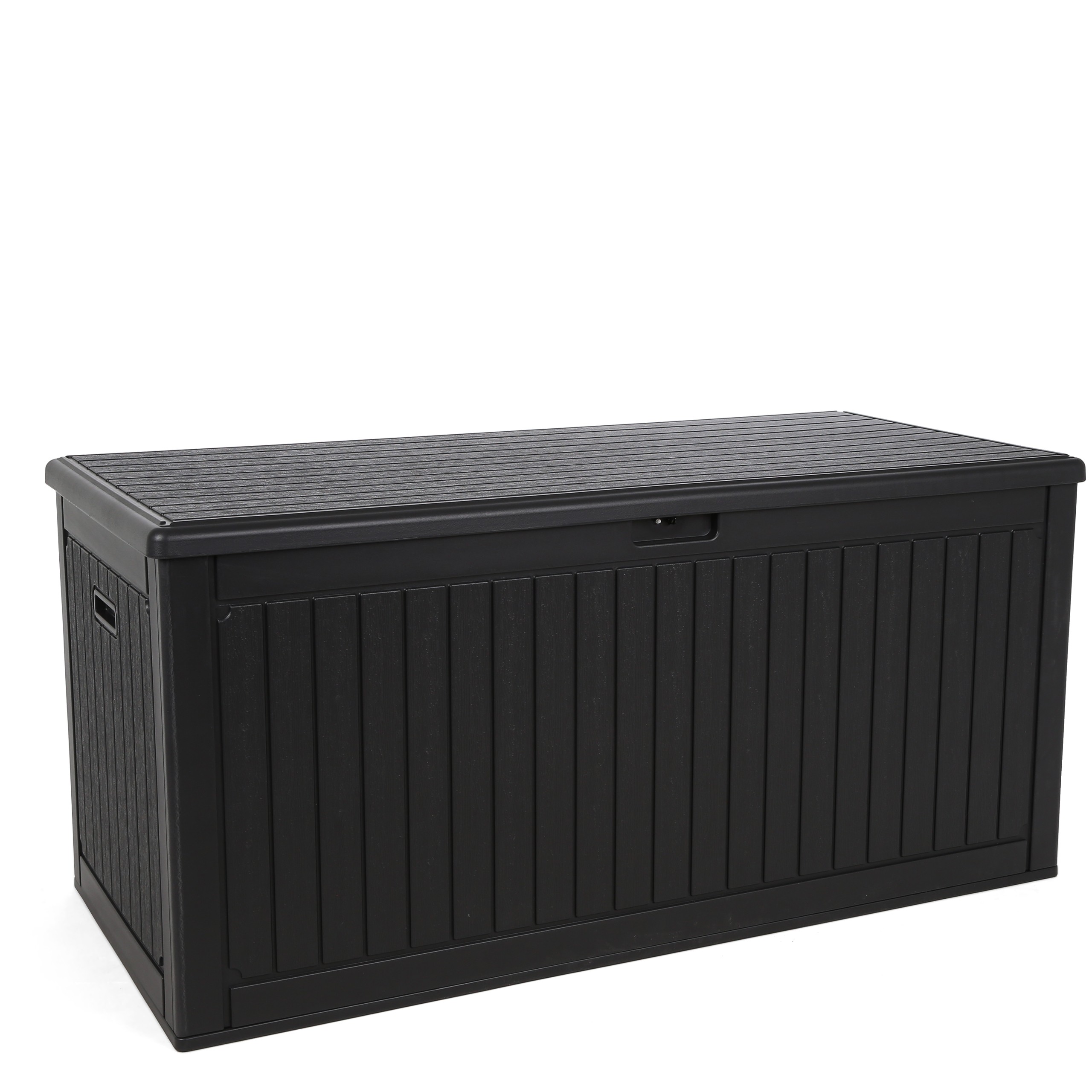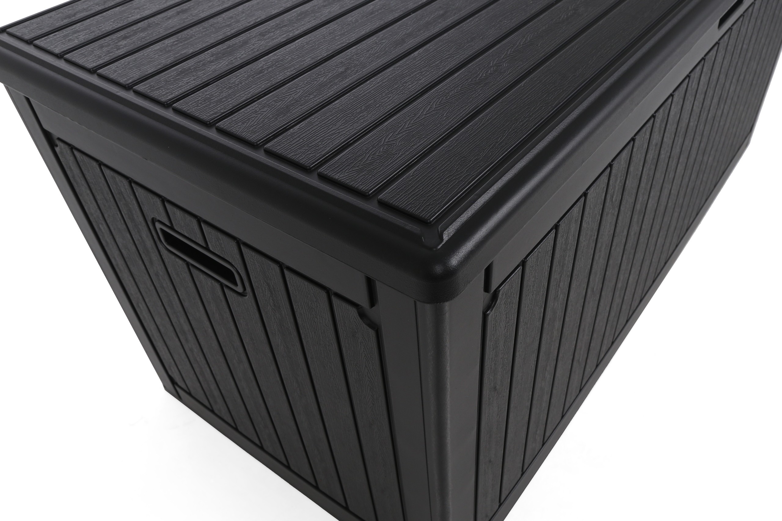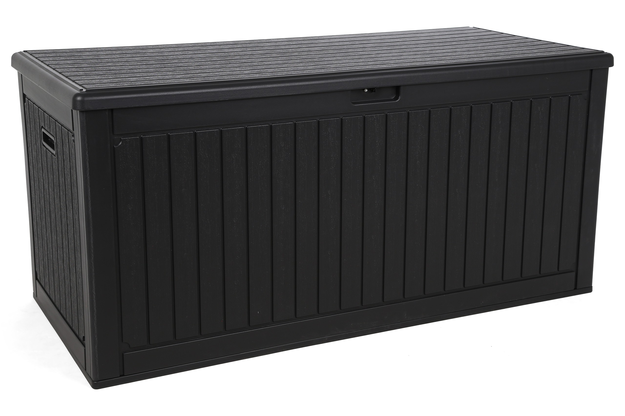 Skrzynia ogrodowa Orebro Black to praktyczne i stylowe rozwiązanie do przechowywania na zewnątrz. Pojemna, trwała i odporna na warunki atmosferyczne, idealna do ogrodu i na taras. Pomaga utrzymać porządek, oferując miejsce na poduszki, narzędzia i zabawki.