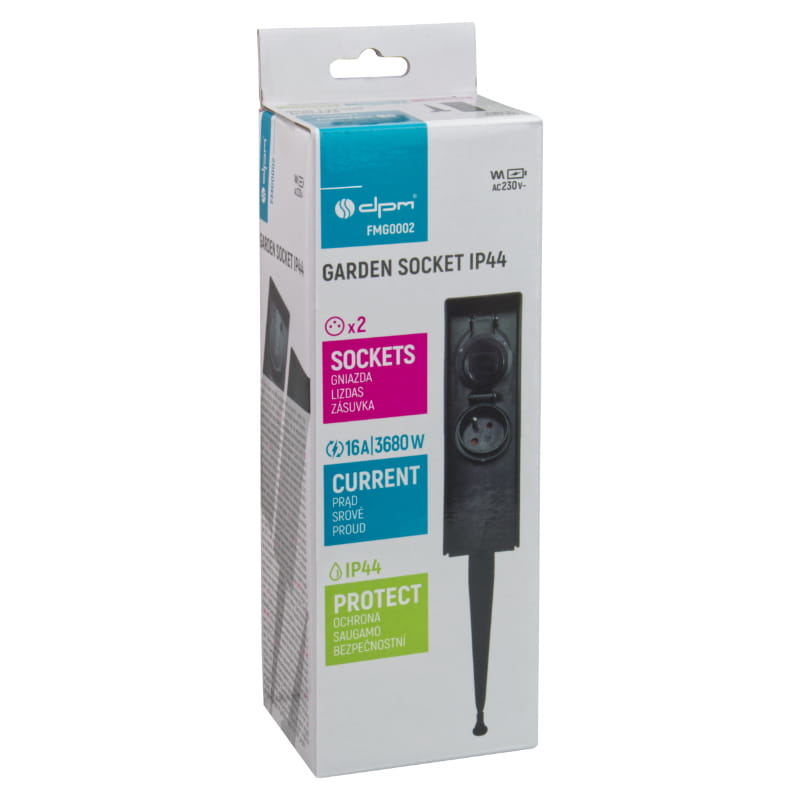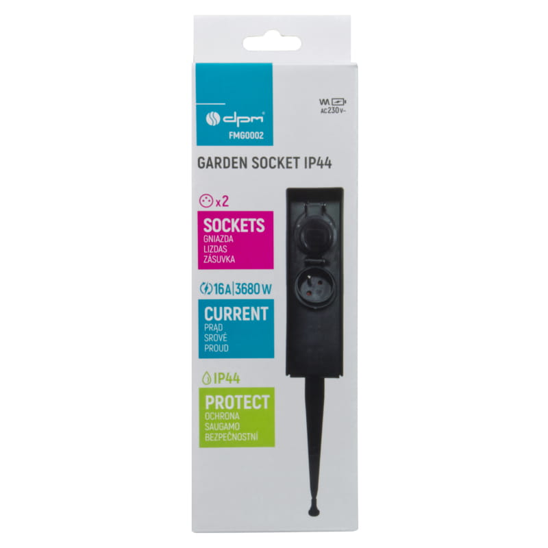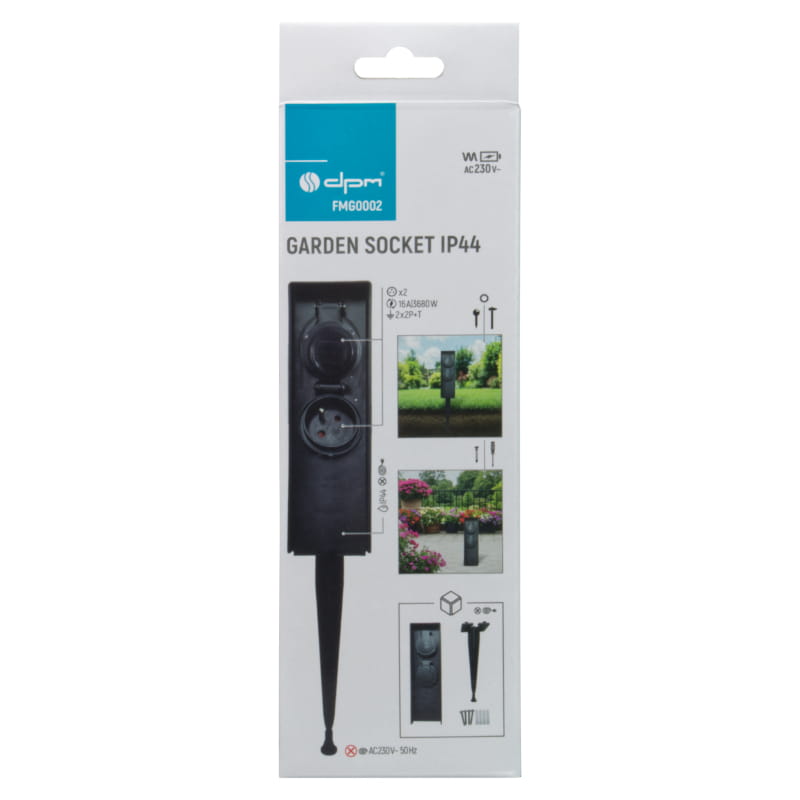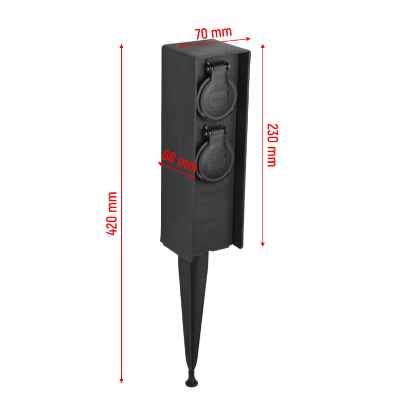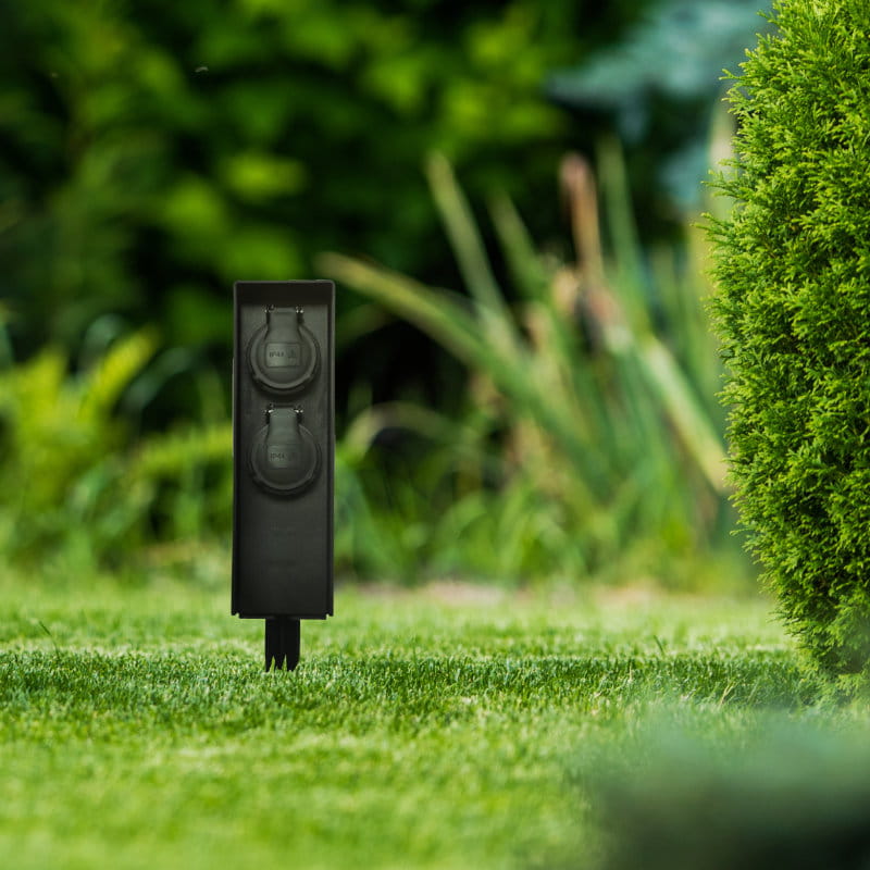 Słupek ogrodowy elektryczny, 2 gniazda, IP44, czarny