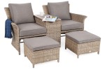 Sofa ogrodowa Milos to elegancki i funkcjonalny mebel z technorattanu, idealny na taras, balkon lub do ogrodu. Posiada lekką, ale trwałą aluminiową konstrukcję, oplecioną odpornym na warunki atmosferyczne technorattanem. Składa się z dwóch foteli połączonych skrzynią ze stolikiem z desek kompozytowych WPC. Dodatkowo wyposażona jest w wysuwane podnóżki i wygodne poduchy z impregnowanym pokryciem. Mebel jest stabilny, komfortowy i trwały, zapewniając relaks na świeżym powietrzu przez wiele lat.