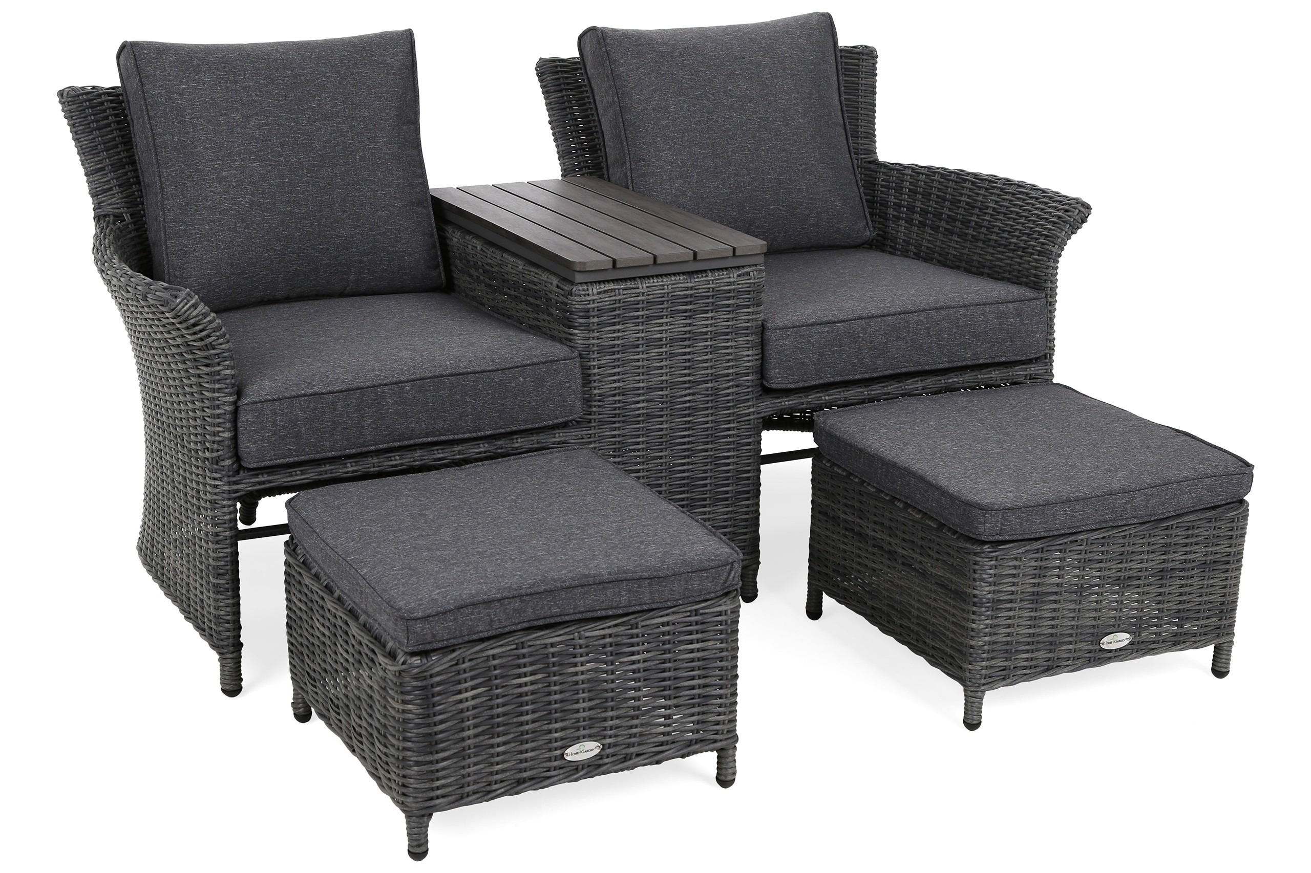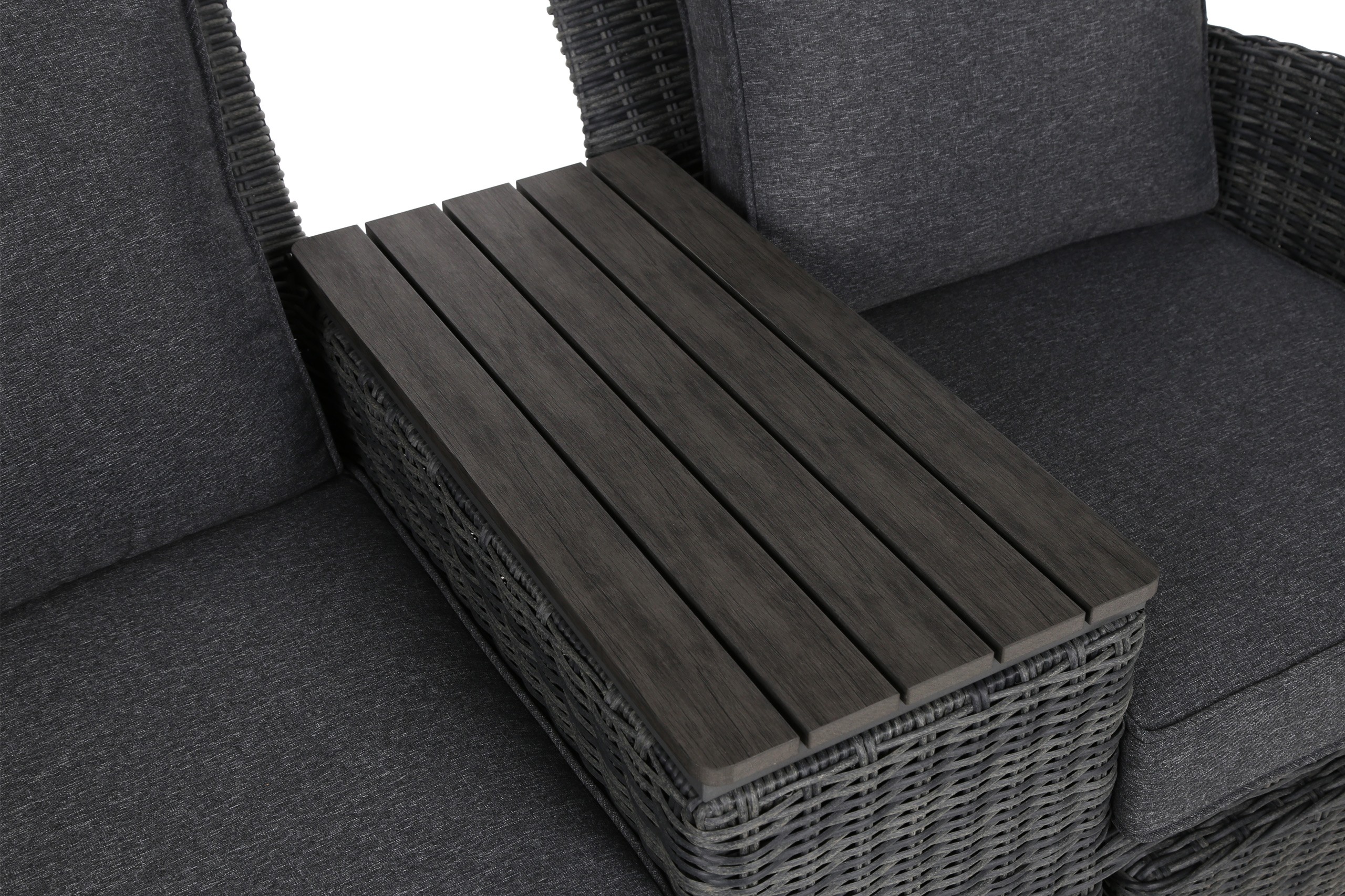 Sofa ogrodowa Milos to elegancki i funkcjonalny mebel z technorattanu, idealny na taras, balkon lub do ogrodu. Posiada lekką, ale trwałą aluminiową konstrukcję, oplecioną odpornym na warunki atmosferyczne technorattanem. Składa się z dwóch foteli połączonych skrzynią ze stolikiem z desek kompozytowych WPC. Dodatkowo wyposażona jest w wysuwane podnóżki i wygodne poduchy z impregnowanym pokryciem. Mebel jest stabilny, komfortowy i trwały, zapewniając relaks na świeżym powietrzu przez wiele lat.