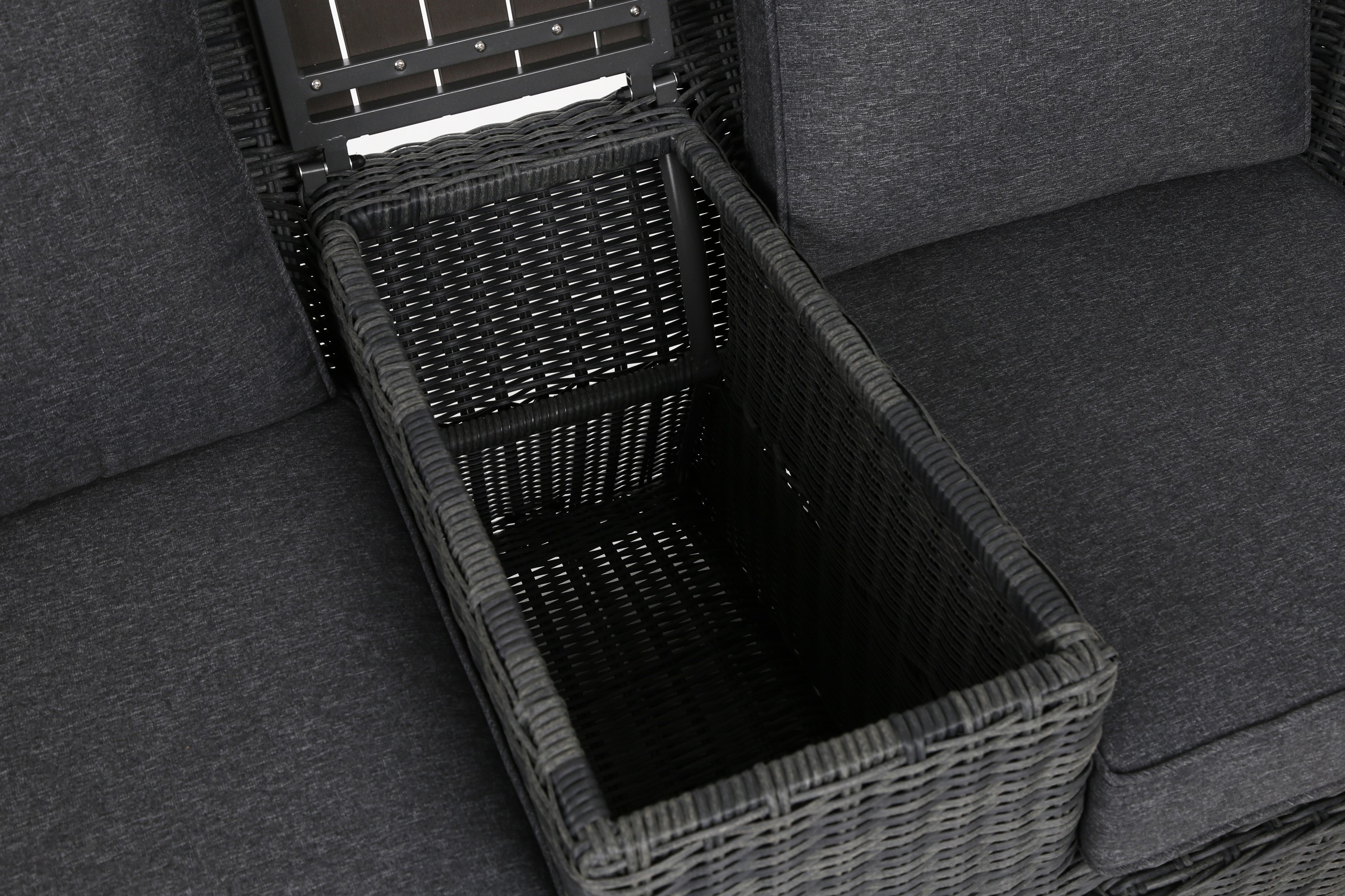 - Kolor technorattan: szary / poduszki: szary melanż.