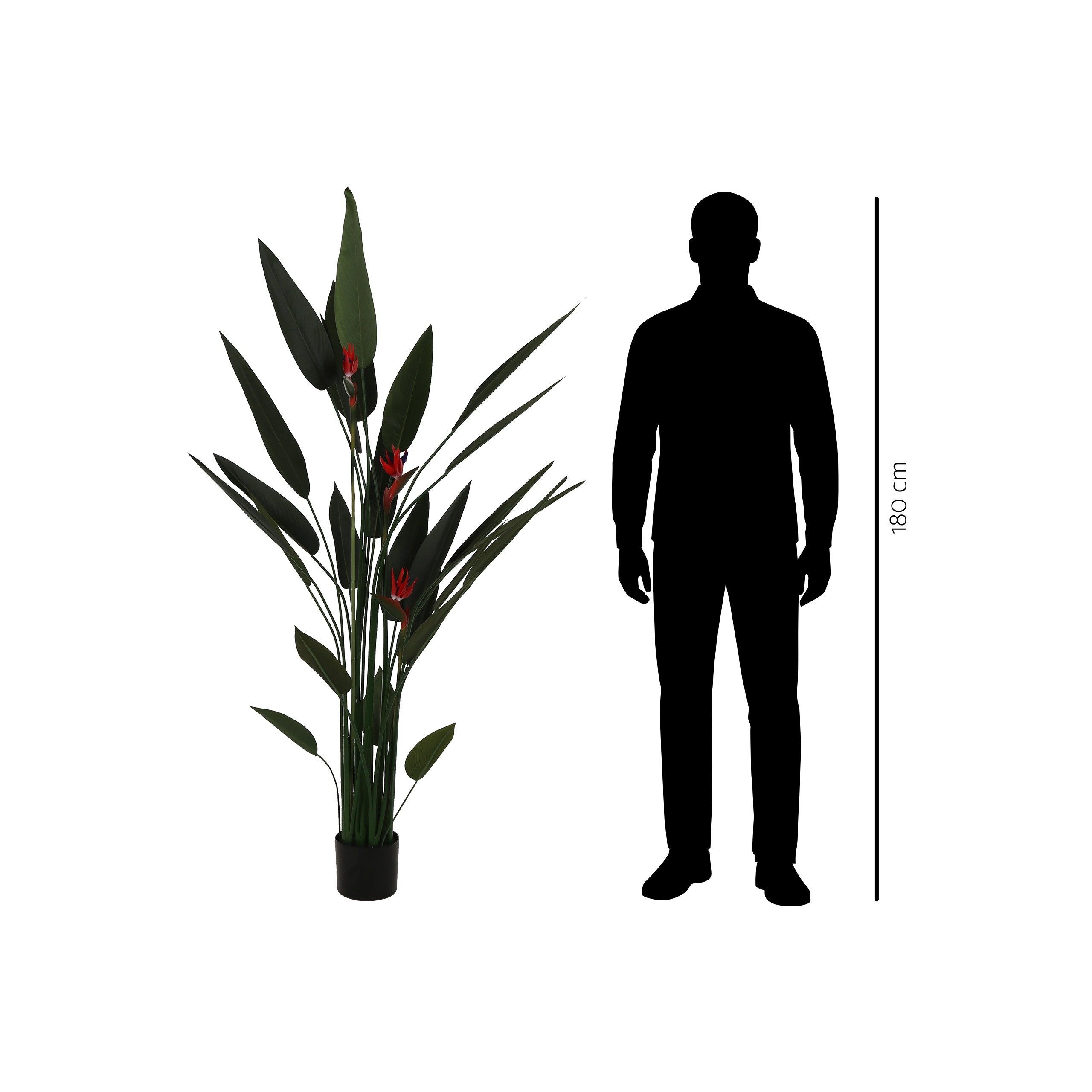 Sztuczna strelicja „rajski ptak” o wysokości 180 cm to elegancka dekoracja, która wnosi do wnętrza egzotyczny, tropikalny klimat. Realistyczne liście i kwiaty wyglądają jak żywe, a roślina nie wymaga żadnej pielęgnacji. Wykonana z trwałych materiałów, zachowuje piękny wygląd przez lata — idealna do salonu, biura czy recepcji.