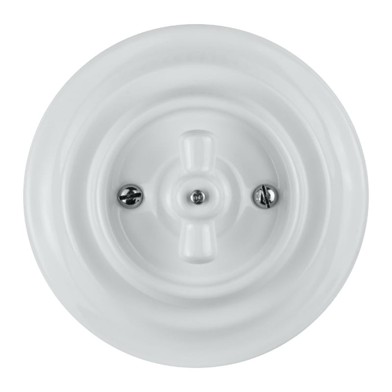 Włącznik ceramiczny schodowy obrotowy, podtynkowy, biały, VINTAGE