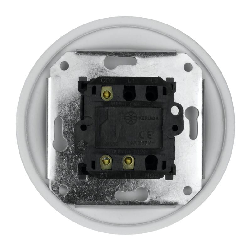 Kolejnym krokiem jest przymocowanie włącznika wkrętami w standardowej puszce instalacyjnej o średnicy 70 mm.