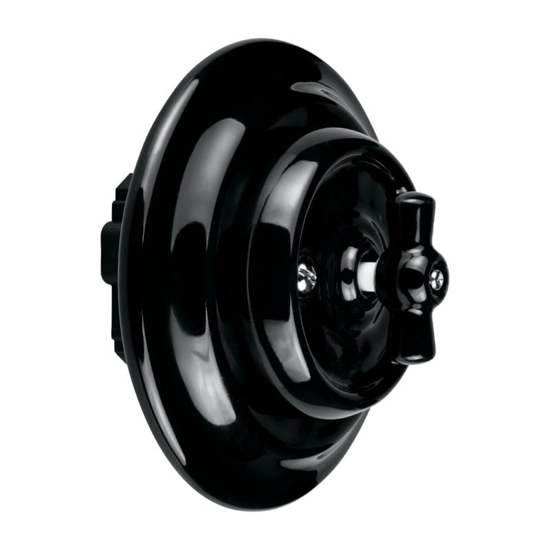 Włącznik ceramiczny schodowy obrotowy, podtynkowy, czarny, VINTAGE