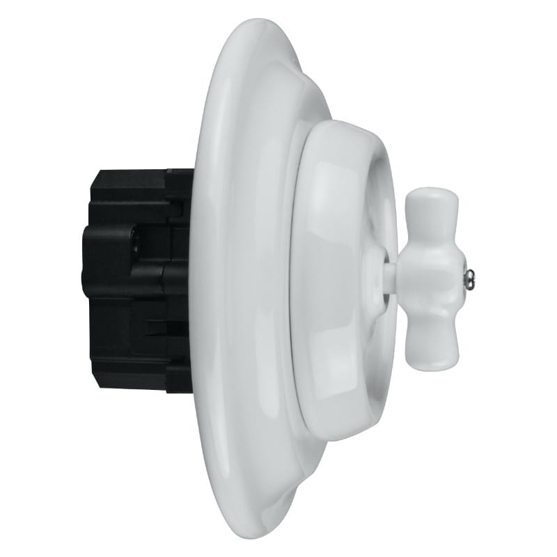 Ponadczasowy wygląd i styl ceramicznego włącznika obrotowego w kolorze białym bardzo dobrze będzie pasować zarówno do wnętrz retro jak i nowoczesnych. Włącznik sprzedawany jest razem z ramką pojedynczą, kompletny i gotowy do montażu podtynkowego.