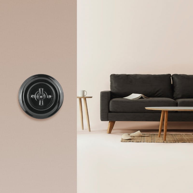Włączniki ceramiczne z serii VINTAGE dostępne są w kolorze białym, czarnym i szarym, do wyboru natynkowe lub podtynkowe z przyciskiem lub pokrętłem.