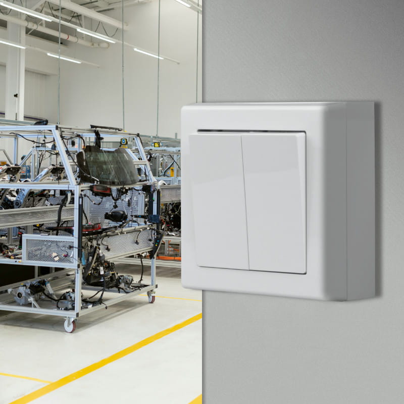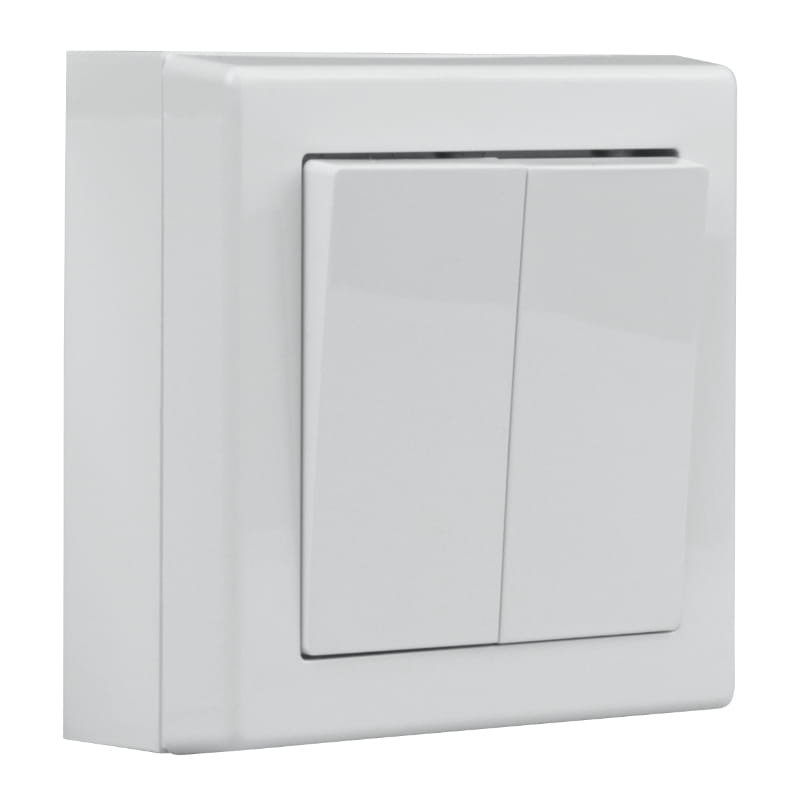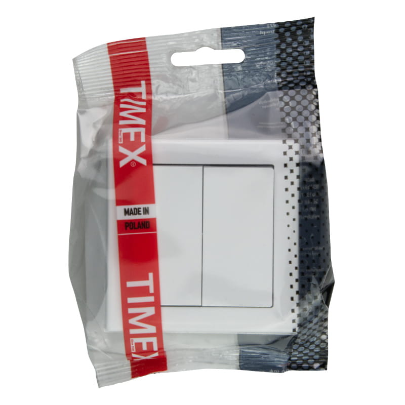 Włącznik podwójny, natynkowy, biały, Jowisz, TIMEX