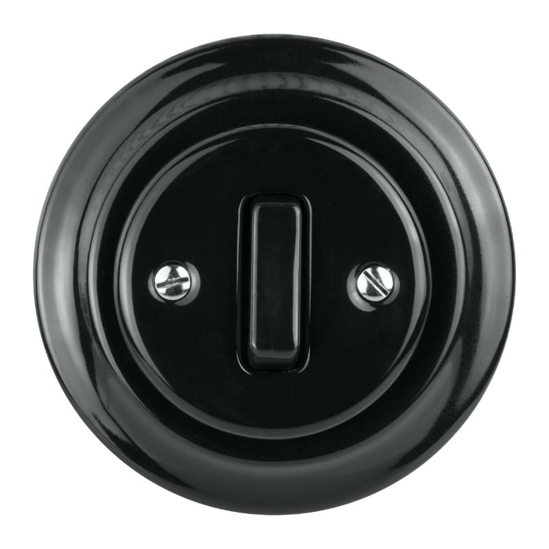 Włączniki ceramiczne z serii VINTAGE dostępne są w kolorze białym, czarnym i szarym, do wyboru natynkowe lub podtynkowe z przyciskiem lub pokrętłem.