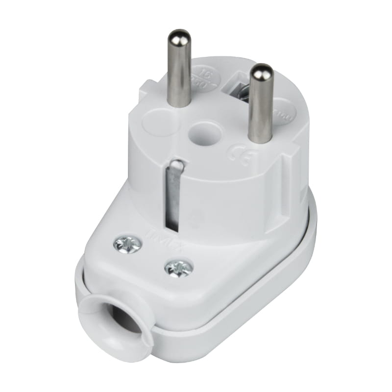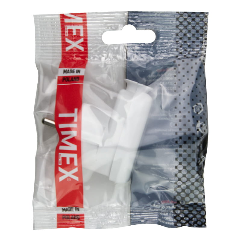 Wtyczka z uziemieniem, kątowa, biała timex