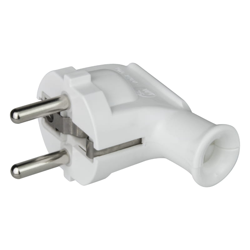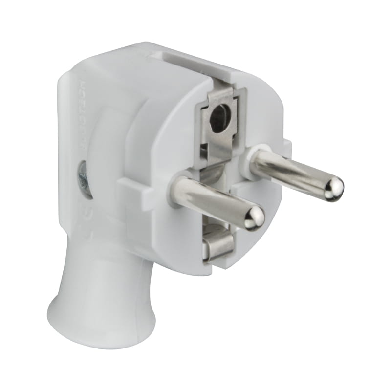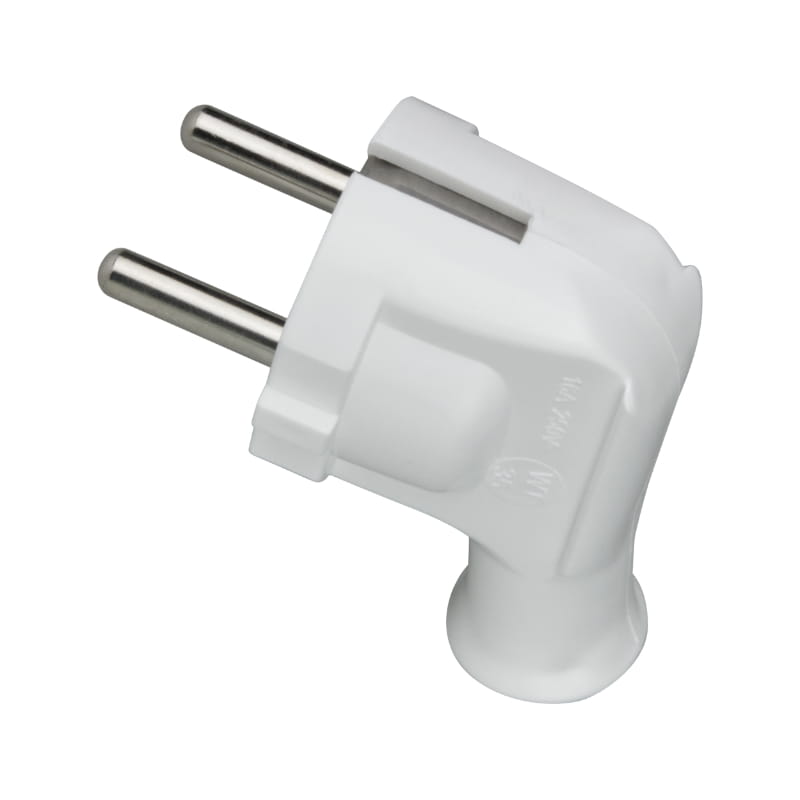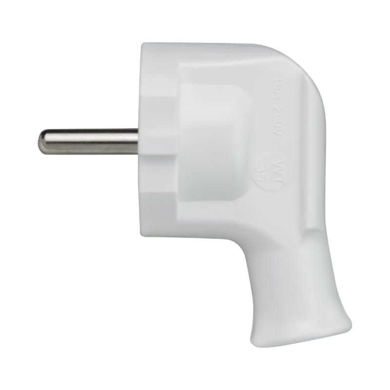 Wtyczka z uziemieniem, kątowa, biała