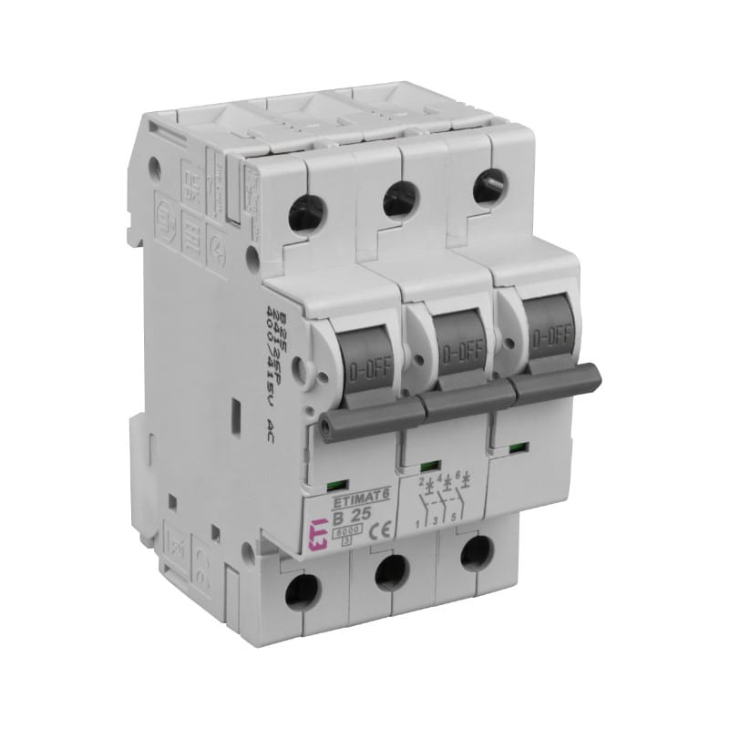 Wyłącznik nadprądowy, 3 bieguny, 6 kA, 25 A, ETIMAT 6 3P B25, ETI