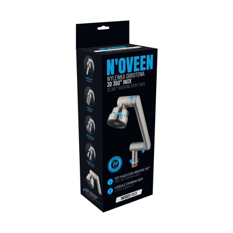 Wylewka obrotowa 3D 360°, inox, IWH931, Noveen