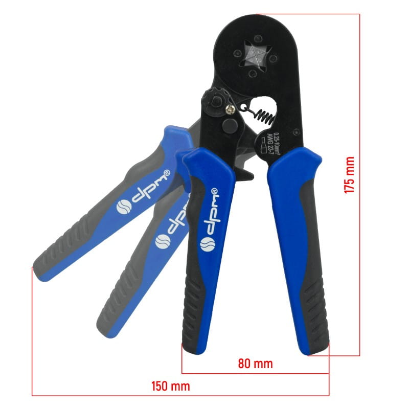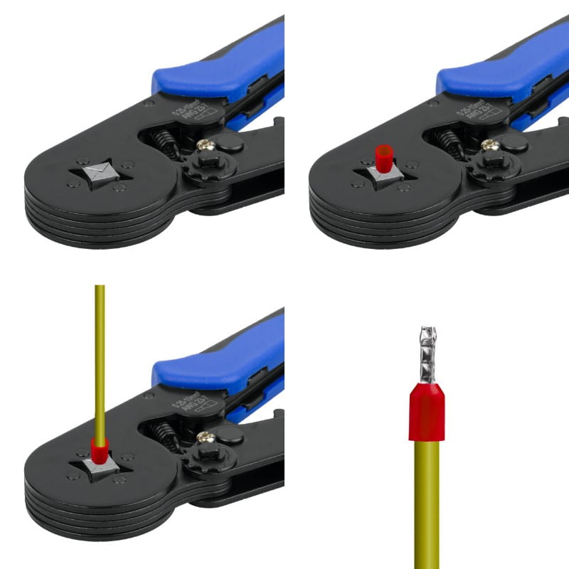 - Zaciskanie konektorów: tulejkowych izolowanych i nieizolowanych 0.25-10 mm2 (AWG 23-7).