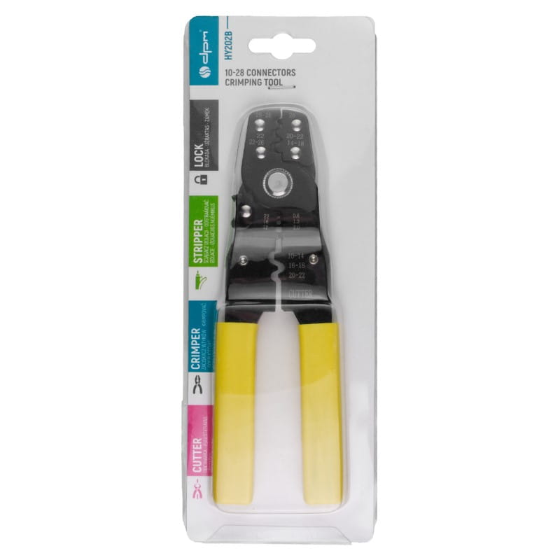 Zaciskarka konektorów HY202B to profesjonalne narzędzie, które łączy w sobie funkcje zaciskania konektorów, ściągania izolacji i obcinania przewodów. Jest idealna dla instalatorów, elektryków oraz majsterkowiczów.