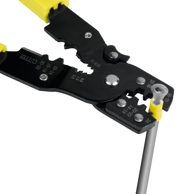 - Dodatkowe funkcje: ściągacz izolacji, obcinarka przewodów.