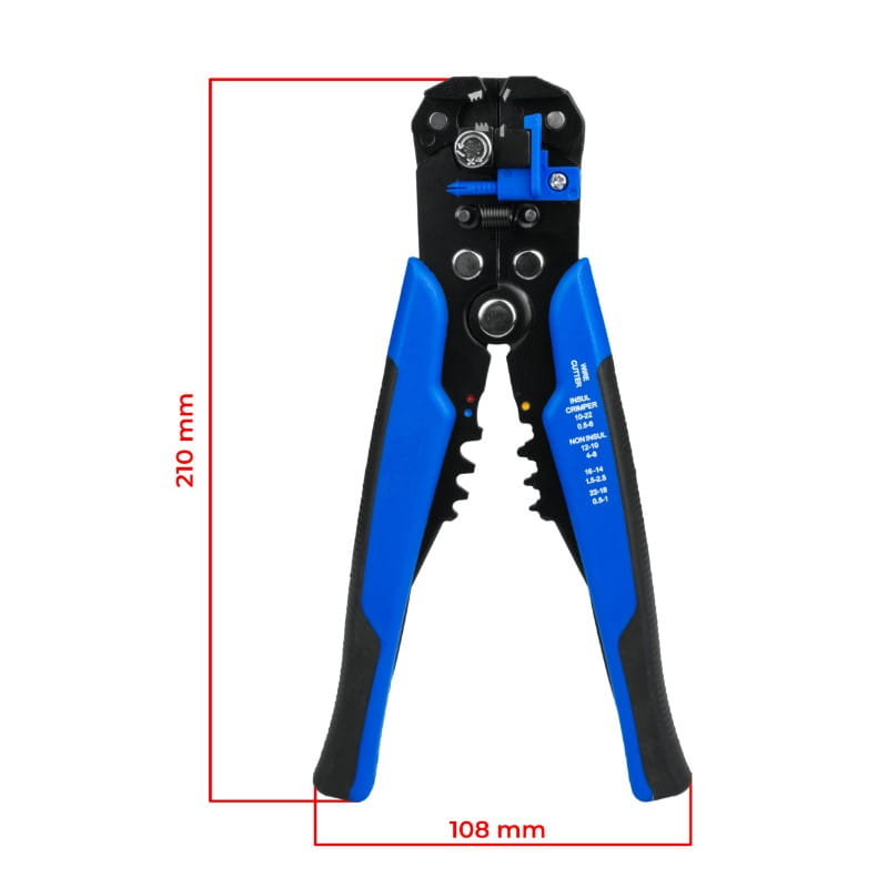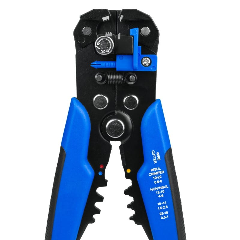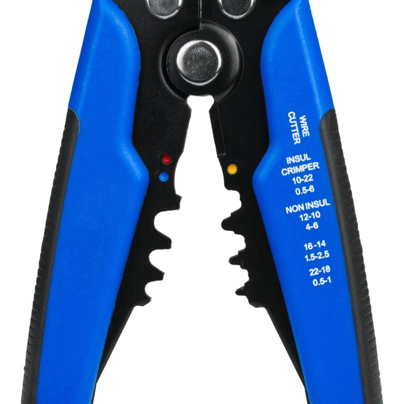 - Zaciskarka do konektorów: obsługuje przewody o średnicach: 0.5-1 mm2 (AWG 22-18), 1.5-2.5 mm2 (AWG 16-14), 4-6 mm2 (AWG 12-10).