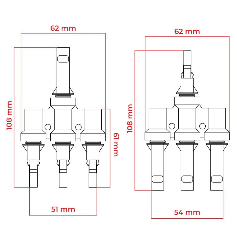 Złącze solarne równoległe, potrójne, MC4, 1000 V, IP67