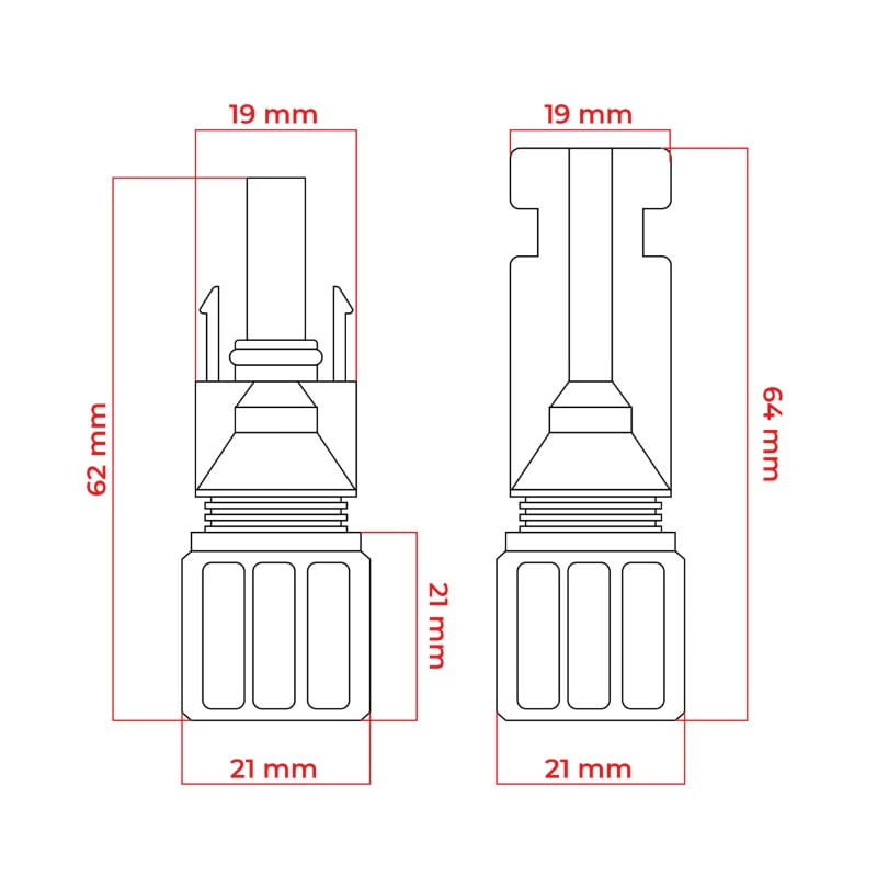 Złącze solarne z pinami, MC4, 1000 V, IP67