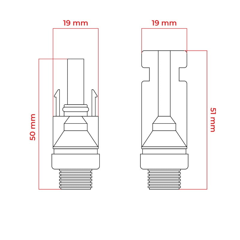 Złącze solarne z pinami do rozdzielni, MC4, 1000 V, IP67